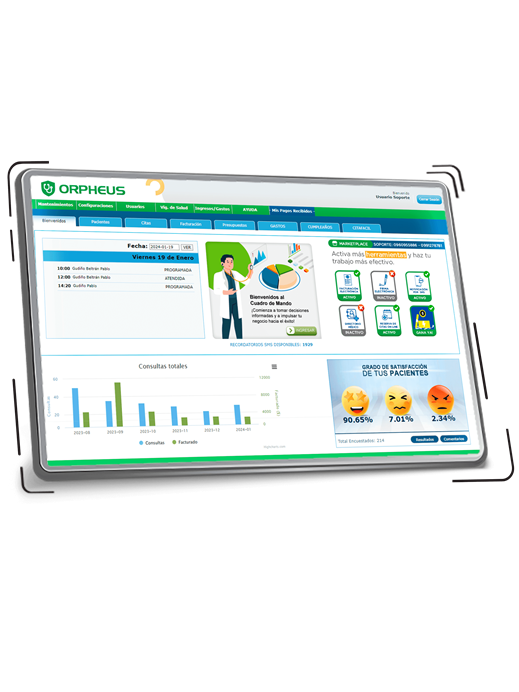 Con Orpheus no solo mejoras el trabajo clínico sino también la experiencia de tus pacientes, la gestión administrativa, financiera y la toma de desiciones inteligentes.